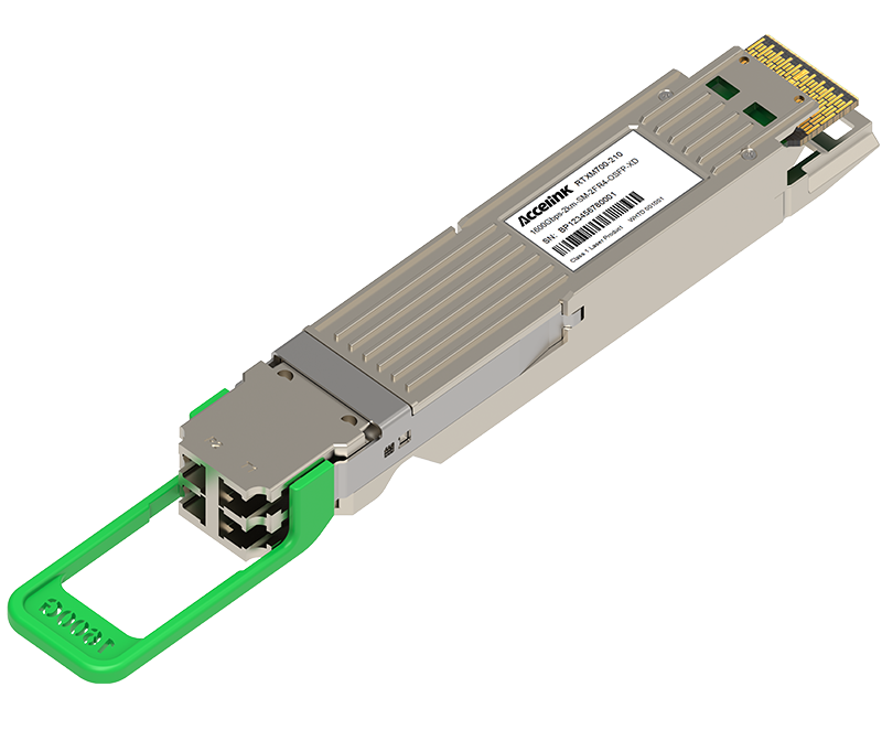 RTXM600-410 800G QSFP-DD800 2xFR4 transceiver modules are designed for use in 800 Gigabit Ethernet links on up to 2km of single mode fiber. They are compliant with the QSFP-DD MSA,IEEE 802.3cu and 100G Lambda MSA.The optical transceiver is RoHS compliant.